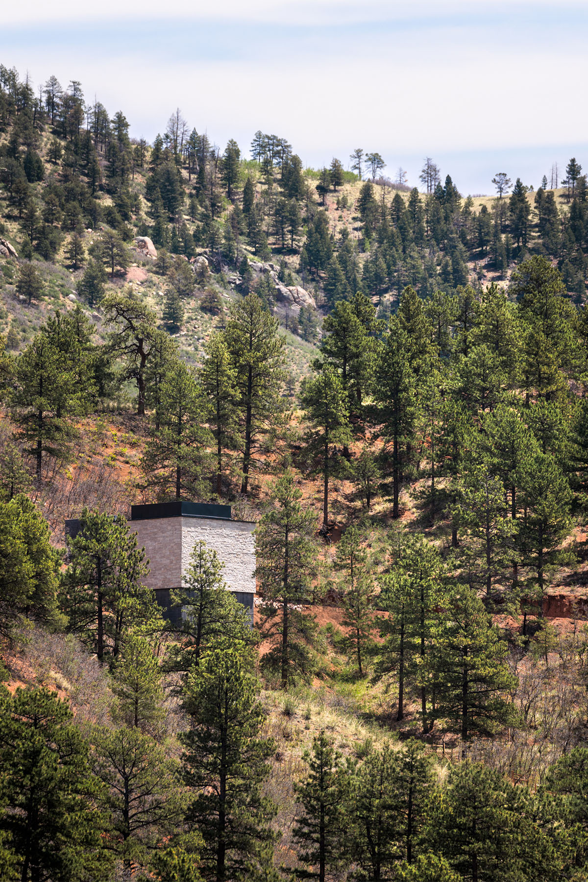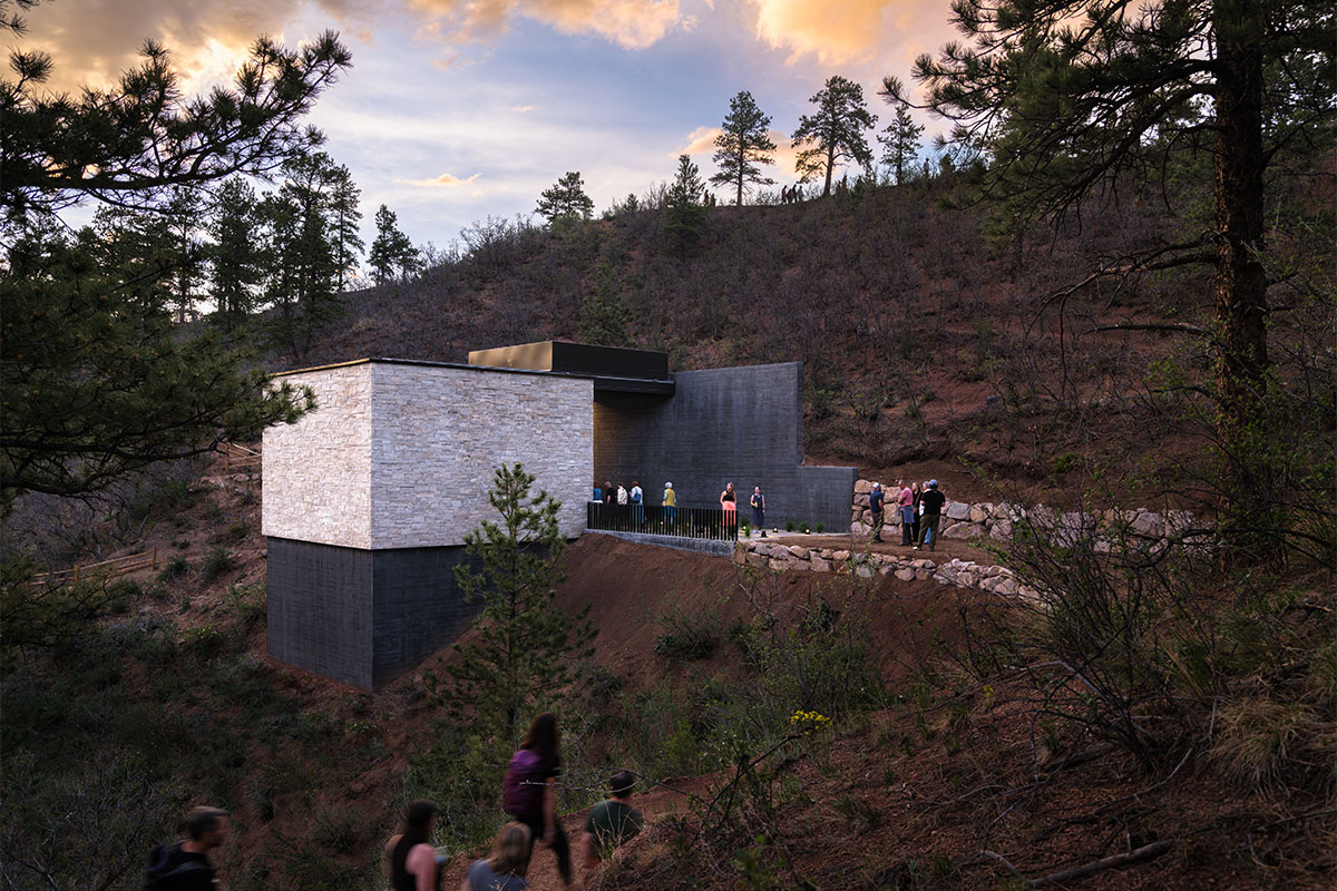 Built on a butte overlooking Gazebo Lake and bathed by the rustling of pine trees, the Green Mountain Falls Skyspace is a harmonious addition to the charming town at the foothills of Pikes Peak—an extension of the landscape, preserved in its natural setting. Your experience begins with an inspirational mountain journey via two new trailheads that deliver hikers directly to the sheltered Skyspace on the butte above.